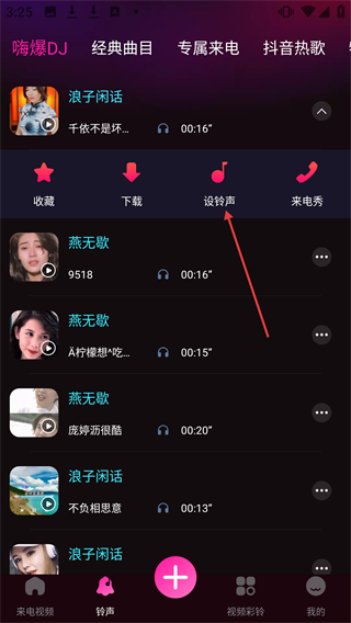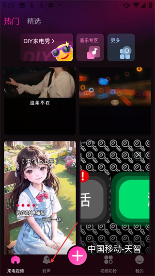 2. 在来电视频的主界面,点击底部的【铃声】选项,即可进入铃声页面。