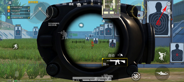 3、装备好枪械之后来到靶场,首先我们需要装上常用倍镜,首先拿一个远处的靶子进行测试,如果感觉枪口往上飘,就需要在开火灵敏度中找到你使用的倍镜调高灵敏度;