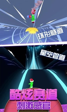 1、玩家要带着小人一起去完成跑酷比赛,你刷收集沿途的星星,提高自己的速度。