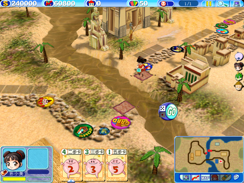 美丽富饶的中华锦绣河山,本关可建设所有产业,胜利条件是让所有对手破产,成为中华大富翁。