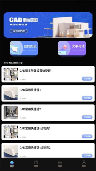 4、点击进入探索,这里为用户提供了认识CAD,制图规则,图形绘制,CAD建模等板块。