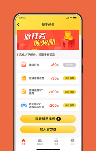 2、新手任务,完成新手任务可以领取奖励,完成次数越多红包越多