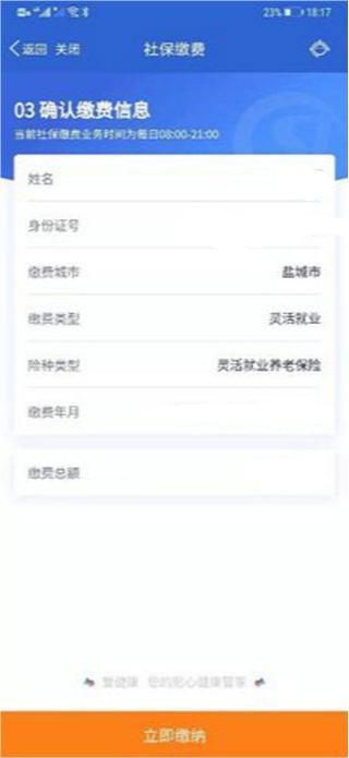 2、填写缴费信息