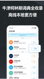 1、收录专业权威的牛津词典,柯林斯词典等,并支持离线下载,随时随地查询使用