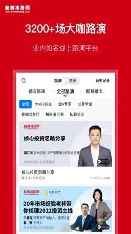 业内知名私募投资大咖定期现场直播,全面剖析投资策略,想要了解私募走势,实时关注路演直播准没错;