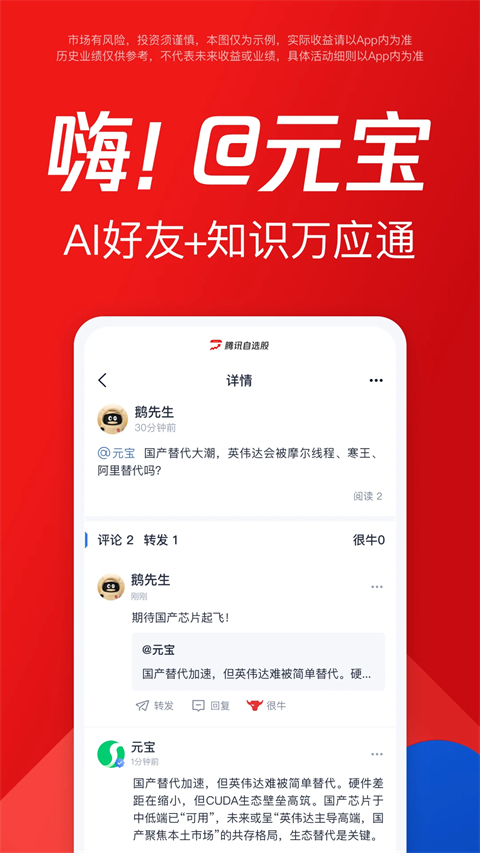 腾讯自选股官方版作为腾讯自主研发的移动端一站式理财平台,它不仅仅是手机炒股软件,还提供了高手股票组合、投资者教育、行业动态资讯等增值服务,帮助投资者在了解投资动态、学习投资知识、完成投资实践之间轻松跳转,无缝对接,让您的投资生活更轻松、更丰富!