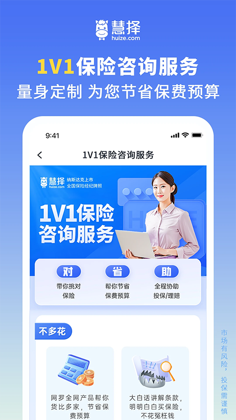 纳斯达克上市(股票代码:HUIZ),与全国70家保险公司合作,提供1000多款保险产品。