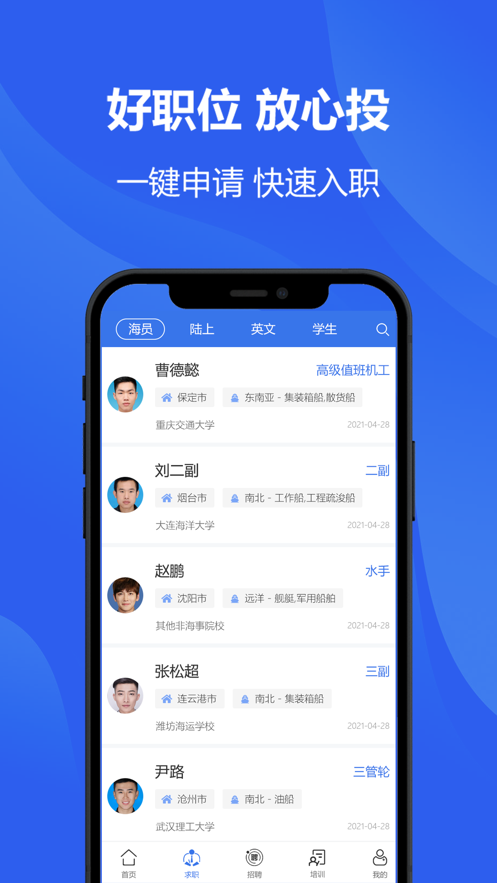 2、细化招聘环节流程,突出已认证船员用户的标志,推进优秀船员求职快速找船。