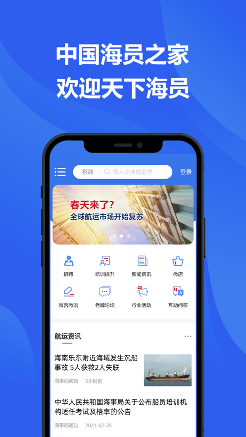 中国海员之家app是服务于海事领域从业者的社区平台,用户能在该平台获取更全面功能服务,船员可享受集培训与办公于一体的生活体验,在这里可了解海事相关的各类资讯、获取专业培训资源、便捷处理办公事务,为海事从业者提供一站式服务,助力他们在海事领域更高效地工作和生活。
